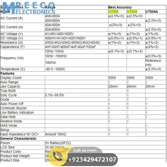 Best Online Shopping website for UNI T Digital Clamp Meter UT204 UT-204 AC DC Amp Best Clamp Multimeter Mini Tong Tester in cheap price in Karachi, Lahore, Islamabad, Rawalpindi, Peshawar, Multan, Quetta, Faisalabad, and all over Pakistan.