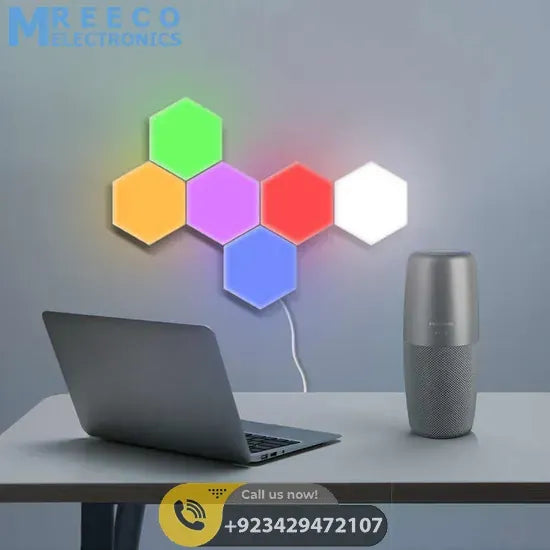 This is Modular Touch Lights Project Quantum Lamp Touch Sensitive Light also called night light magnetic hexagon you can decorate the wall with these touch light blocks As many as you want for restaurant, marriage hall, home and night light. The product consists of a plastic hexagon, which can be connected with many magnets and interlocking patterns to form a touch screen wall lamp as many as you want.