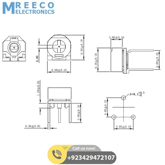 Cermet preset is a compact variable resistor and pcb mountable with 3 terminal pins. The voltage between the terminal varies as the preset is rotated. The Variable resistors are used for variating voltage as per the need in a circuit. The outer two pins are connected to Vcc and 0V, and cetner pin outputs a variable volatge between 0v and Vcc as the rotary cermet is rotated.
