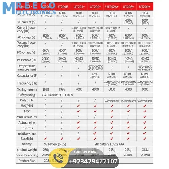 - UT203+ has a maximum 600V voltage measurement and a high voltage frequency measurement function.