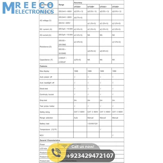 Features Of UT33D+ Digital Multimeter AC/DC Ammeter Voltmeter Ohm Tester: