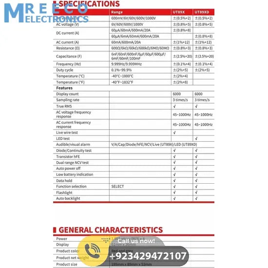 Specifications Of UT89X Digital Multimeter: