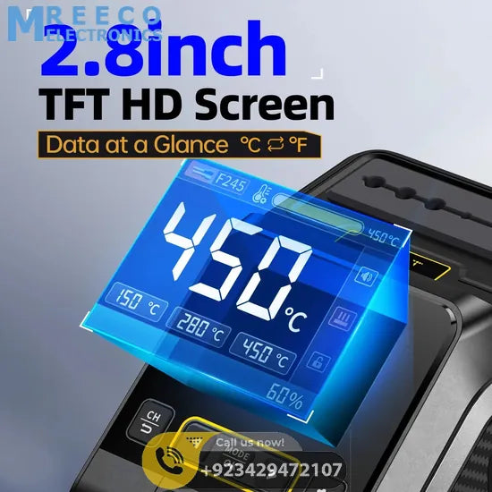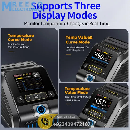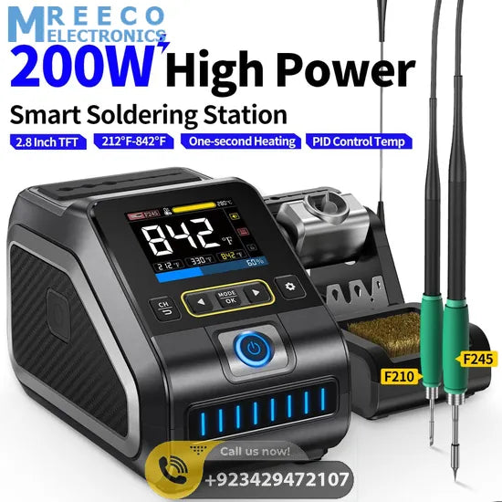DWS-200 is a 200W high-power precision soldering station launched by FNIRSI. It is a commonly used hand tool in electronic soldering processes. This product has a built-in high-power pure copper transformer, suitable for 100-240V voltage input, with a maximum power of 200W. Supports conversion from ℃ to ℉, adjustable temperature range 100℃~450℃/212℉~842℉. It also supports preset 3 sets of temperature values and can be connected to a soldering iron stand for standby induction. Use dynamic temperature curve mode to try monitoring data.