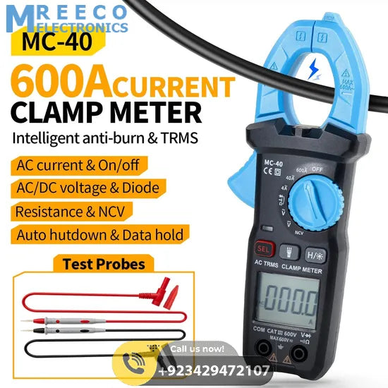 The MC-40 is a high-precision clamp meter designed to handle a wide range of measurement tasks with ease. This versatile tool features a high current rating of 600A, allowing you to measure even the most demanding electrical loads.