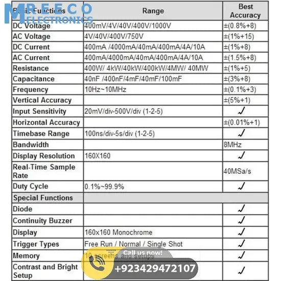 Specifications Of Portable Digital storage Oscilloscope Comes Multimeter DSO: