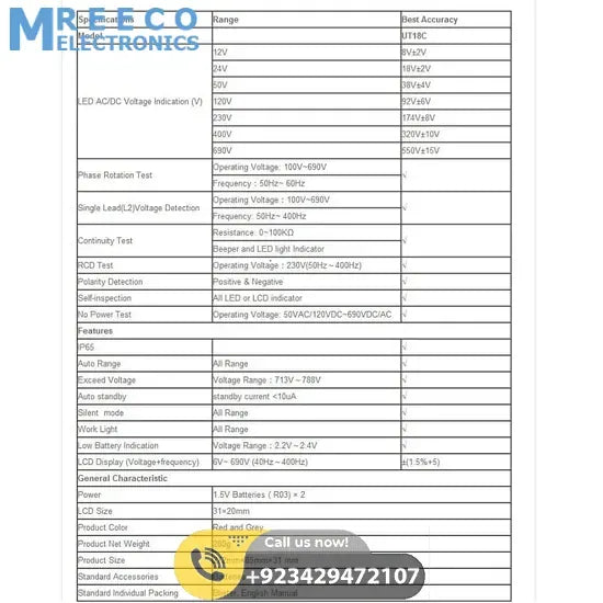 Best Online Shopping website for UNI T Digital Voltmeter UT18C Voltage and Continuity Tester AC DC Voltage Tester in cheap price in Karachi, Lahore, Islamabad, Rawalpindi, Sukkur, Peshawar, Multan, Quetta, Faisalabad and all over Pakistan.