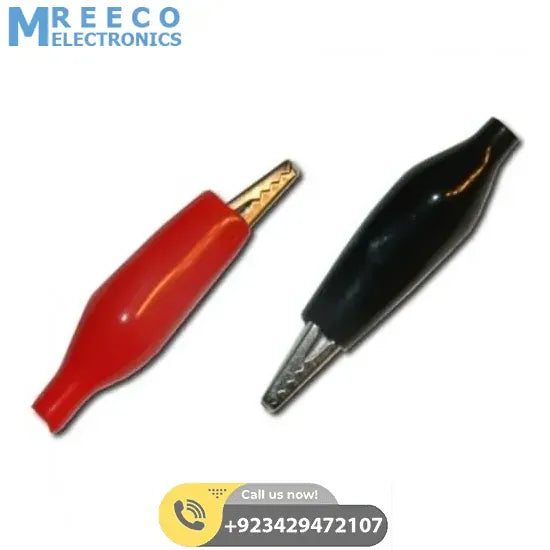 Crocodile Clips Set (also alligator clip) is a sprung metal clip with long, serrated jaws. Crocodile Clips Set which is used for creating a temporary electrical connection. This simple mechanical device gets its name from the resemblance of its jaws to that of an alligator's or crocodiles. It is used to connect an electrical cable to a battery or some other component. Functioning much like a spring-loaded clothespin, the clip's tapered, serrated jaws are forced together by a spring to grip an object. When manufactured for electronics testing and evaluation, one jaw of the clip is typically permanently crimped or soldered to wire or is bent to form the inner tubular contact of a ~4 mm female banana jack, enabling a quick non-permanent connection between a circuit under test and laboratory equipment or to another electrical circuit. The clip is typically covered by a plastic shroud or "boot" to prevent accidental short-circuits.