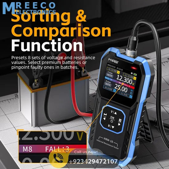 FNIRSI "HRM-10" is our company's first handheld high-precision attery internal resistance meter. It is a true four-wire measurement internal resistance meter, designed with precision, convenient to carry. The device can automatically test internal resistance and voltage values simultaneously, with measurement results displayed on the screen. Users can also manually adjust the voltage and resistance range. The product features a sorting mode, automatically filtering the good and bad batteries based on user-set thresholds. It also supports historical records and exporting data tables of historical measurements.